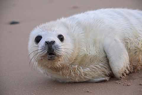 September to December is the breeding season for grey seals. Pups are born with a fluffy white coat and don't enter the sea for the first two to three weeks. Don't approach a seal pup on its own, or allow dogs or other animals to harass them, as they can give a nasty bite - and if a seal pup is scared into the water, it could be washed out to sea and get lost.