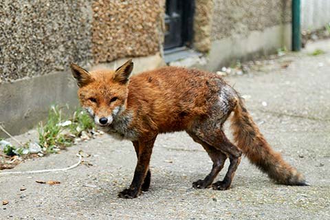 Sarcoptic mange is a disease caused by mites irritating the skin. This condition is very common in foxes in the UK and has caused big declines in their populations. Foxes pick up the mite through direct contact with another infected fox. It's rare for mange to be passed to dogs or other pets. For some foxes, the infection is mild and they recover easily. For others, the symptoms are more severe and it can be fatal in some cases.