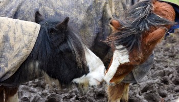 In extreme weather conditions, a tethered horse must be provided with a well-fitting rug that's checked daily for signs of wear to itself or the horse. If a horse is tethered to a tree, it can become entangled and harm itself. If it's tethered on open ground, it has no protection from flies in the summer. It's also important to tether the horse in the right place, so that a hillside or dip in the ground can provide shelter.