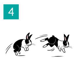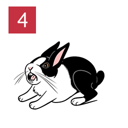 - This rabbit turns and moves away, flicking their back feet. Their ears may be held against their back.